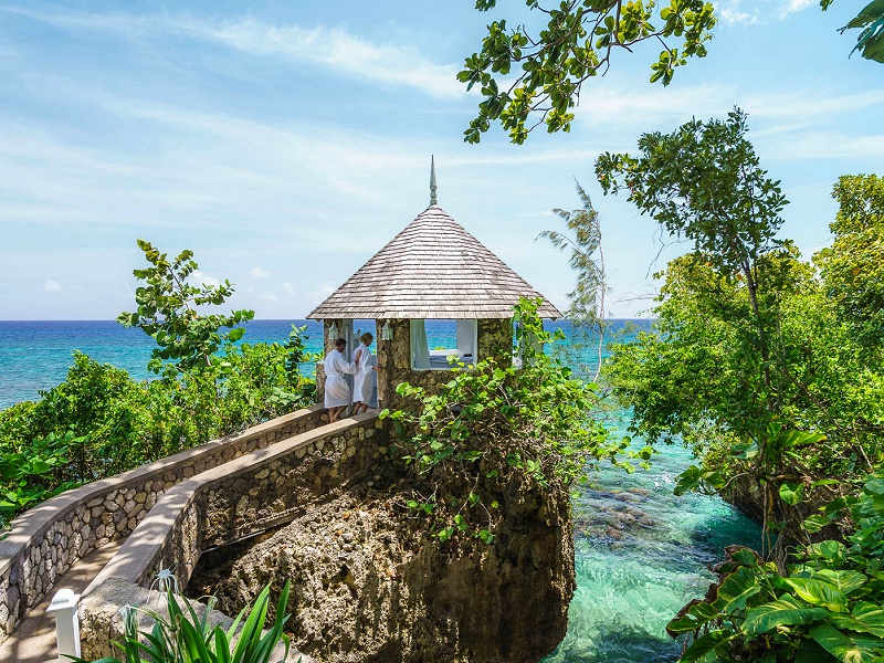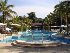 This is one awesome resort. We visited for a day while we were staying at Couples San Souci and decided to make it part of our stay every time we went to Jamaica. It’s a renovated 1940s resort with beautiful rooms and great restaurants. The lobby area is breezy and gorgeous, with orchids everywhere and regularly updated decor. The spa has a wading pool, outdoor hot tubs, and amazing services. It’s popular with honeymooners and wedding parties. In addition to regular rooms, there are private cottages on property that can be rented for an upcharge.